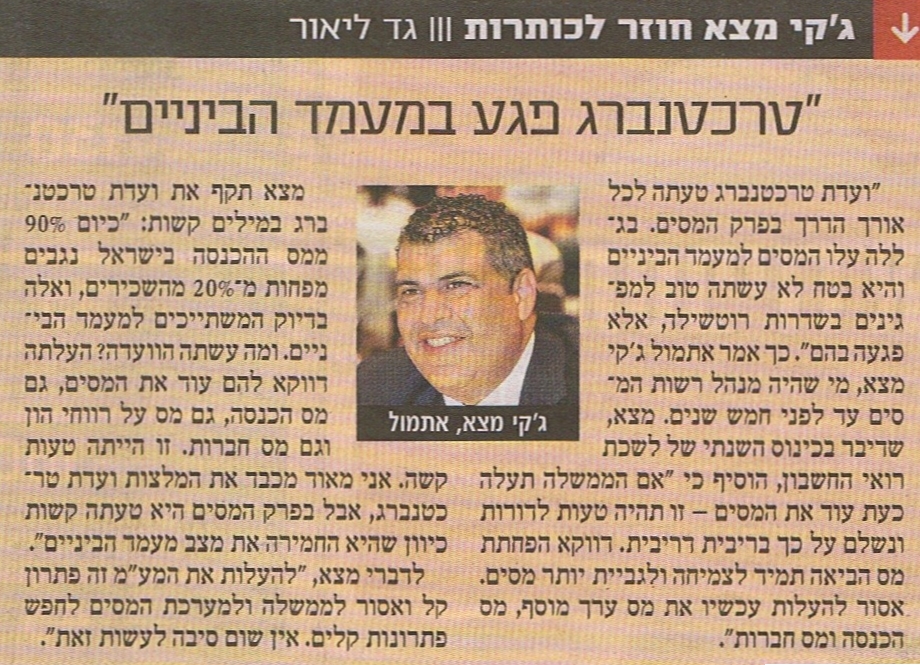ועדת טרכטנברג טעתה לכל הדרך בפרק המסים. בגללה עלו המסים למעמד הביניים והיא בטח לא עשתה טוב למפגינים ברוטשילד 15 בפברואר 2012 לכתבה המלאה לחצו כאן